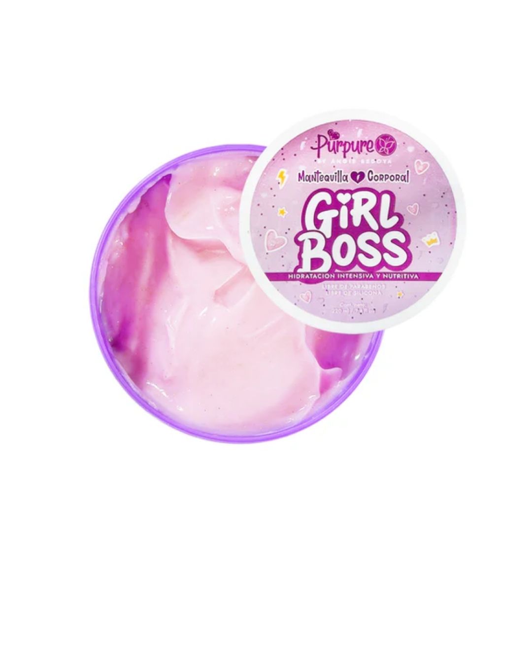 Haz que tu piel brille con la Mantequilla Corporal Girl Boss Purpure. Su fórmula rica hidrata profundamente, dejando tu piel suave y luminosa, mientras que su fragancia sofisticada realza tu belleza. ¡Siéntete poderosa y radiante!